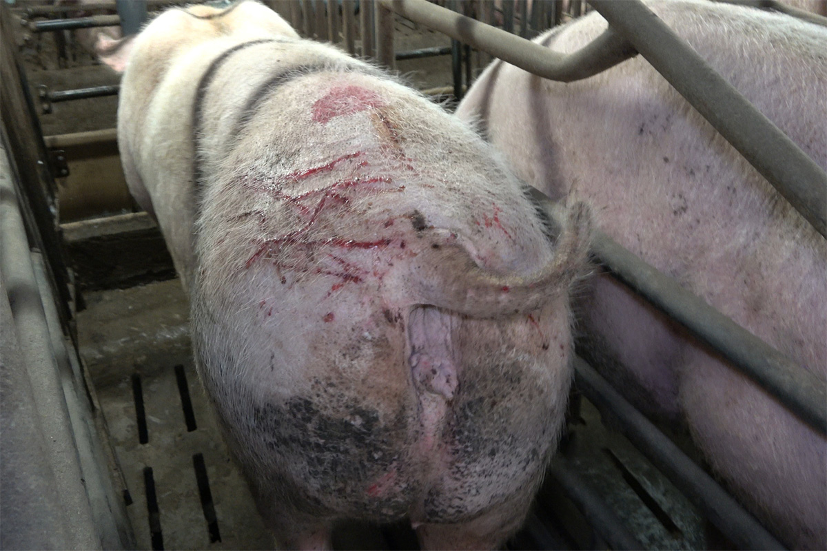 Die Kastenstände sind zu eng, manche fallen auseinander. Einige Schweine haben Verletzungen, manche sind völlig abgemagert. Tierärztlich versorgt werden sie offenbar nicht. Eine dicke Schicht Kot sammelt sich direkt vor den Gesichtern der Tiere. Besonders absurd: Der Betreiber arbeitet wissenschaftlich zum Tierschutz in der Schweinehaltung. In dem Betrieb waren 2015 bei einem Brand rund 1.000 Schweine verendet, 2024 kam es zu einem Polizeieinsatz. Ernsthafte Konsequenzen blieben offenbar aus.